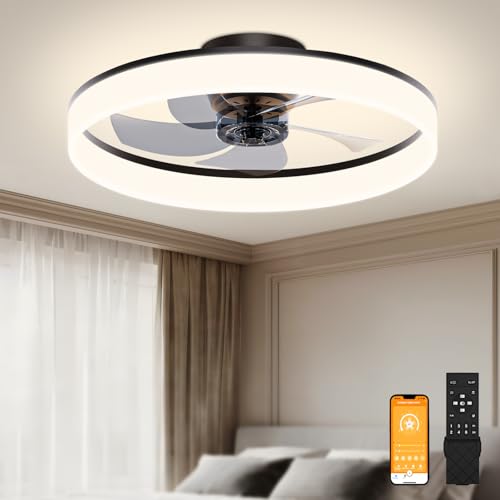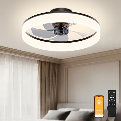 CHANFOK Smart Ceiling Fans with Lights Compatible with Alexa and Google Assistant 20", Low Profile Ceiling Fan with Light and Remote & APP Control, 6-Speed Reversible Blades (Black)