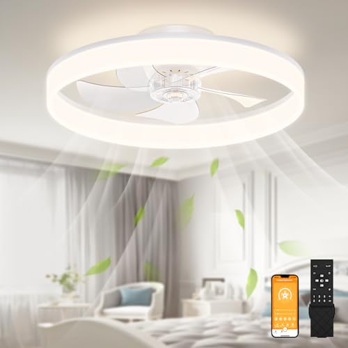 CHANFOK Ceiling Fan with Remote Control Flush Mount Modern Indoor 19.7" LED Dimmable Low Profile Ceiling Fans,Smart 3 Light Color Change and 6 speeds