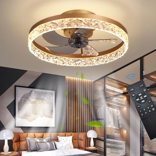 Quiet Ceiling Fans with Lights Remote Control, Modern Lighting Fan Ceiling Light LED Dimmable Ceiling Fan Lamps for Bedroom Living Room, Fan Reversible and 6 Speeds (Gold, 50CM)