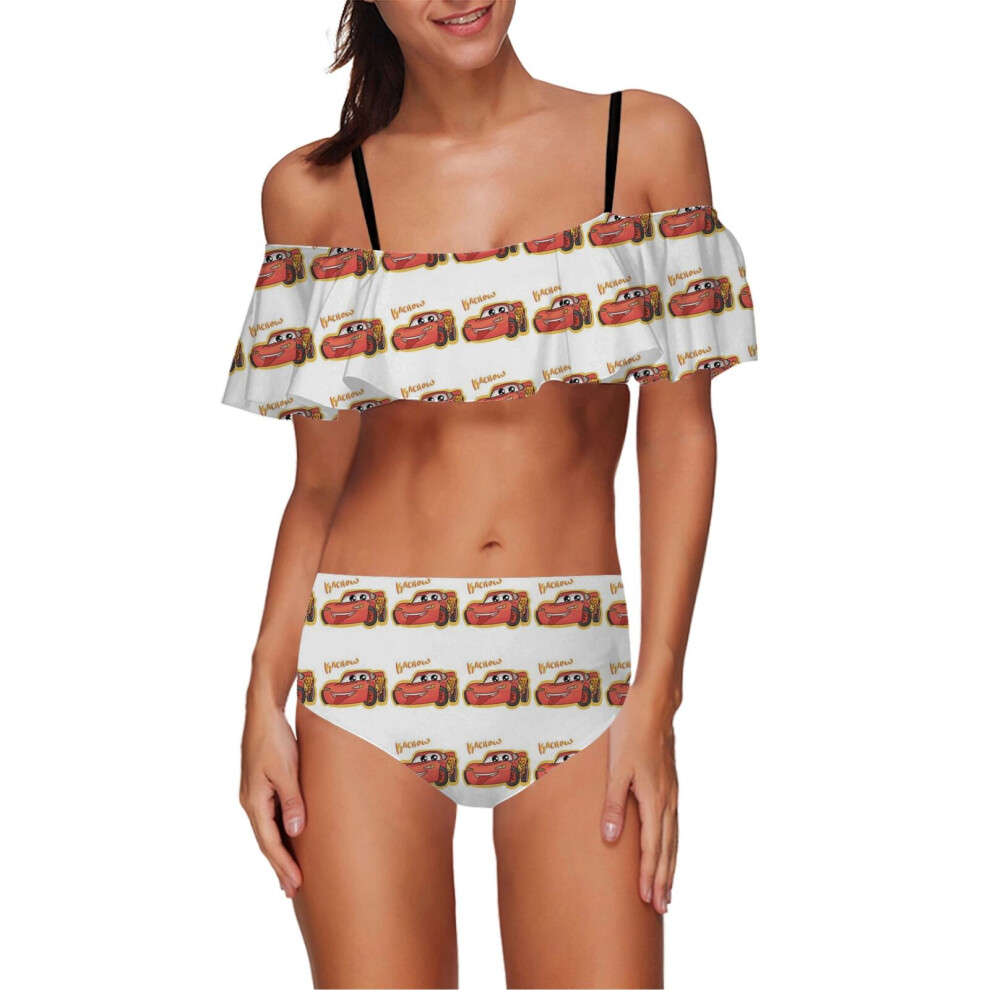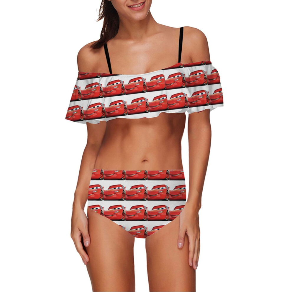 (Lightning Mcqueen From Cars Copy_6876) Women's Bikini High Waisted Set Ruffle Tankini Swimsuit Flounce Top Trim Two Piece Tummy Control Bathing Suit