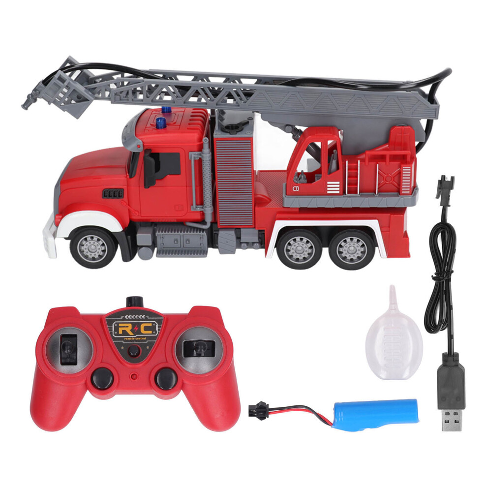 Fire Truck Toy With Remote Control, Extendable Ladder Boom And Shooting Water Pump Hose, Features Simulated Working Sound And Lightning, Educational