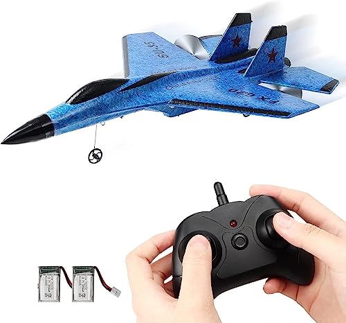 yusvwkj RC Plane, L0712 Remote Control Plane with 2 Batteries, 2.4GHz 2 Channel Remote Control Airplane Fighter Toys Easy to Fly for Adults Kids Beginners Boys, Blue