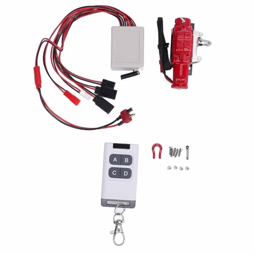 POENVFPO 1/10 Scale RC Car Winch with Remote Control, T Plug Extension Cable, Aluminum Alloy Crawler Winch for SCX10 D90 D110 (Red)