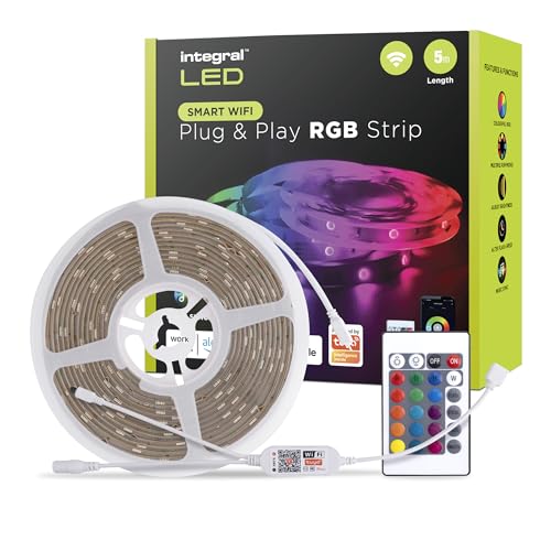 Integral 5m RGB LED Strip Light, Colour Changing, Dimmable, Music Sync - Tuya WiFi Smart App & Remote Control, Plug & Play with UK Plug - for Bedroom, Living Room, Office, Kitchen and More