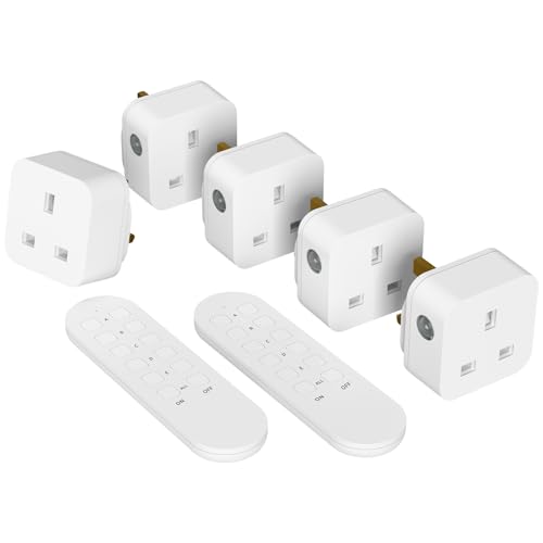 Remote Control Plug Sockets UK 5 Pack, TESSAN Wireless Electrical Plug Switch with 30m Operating Range, Programmable Remote Socket Switch Work for Household Appliances
