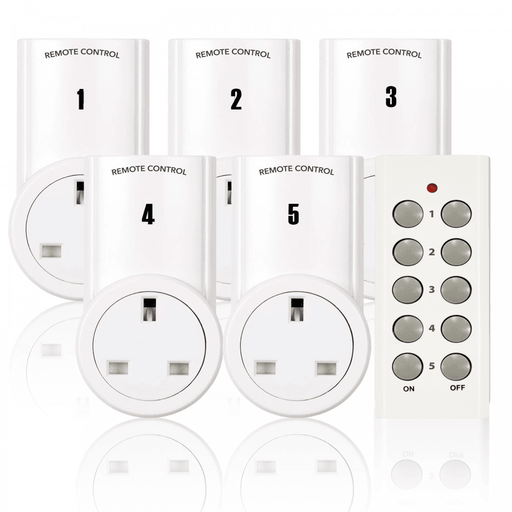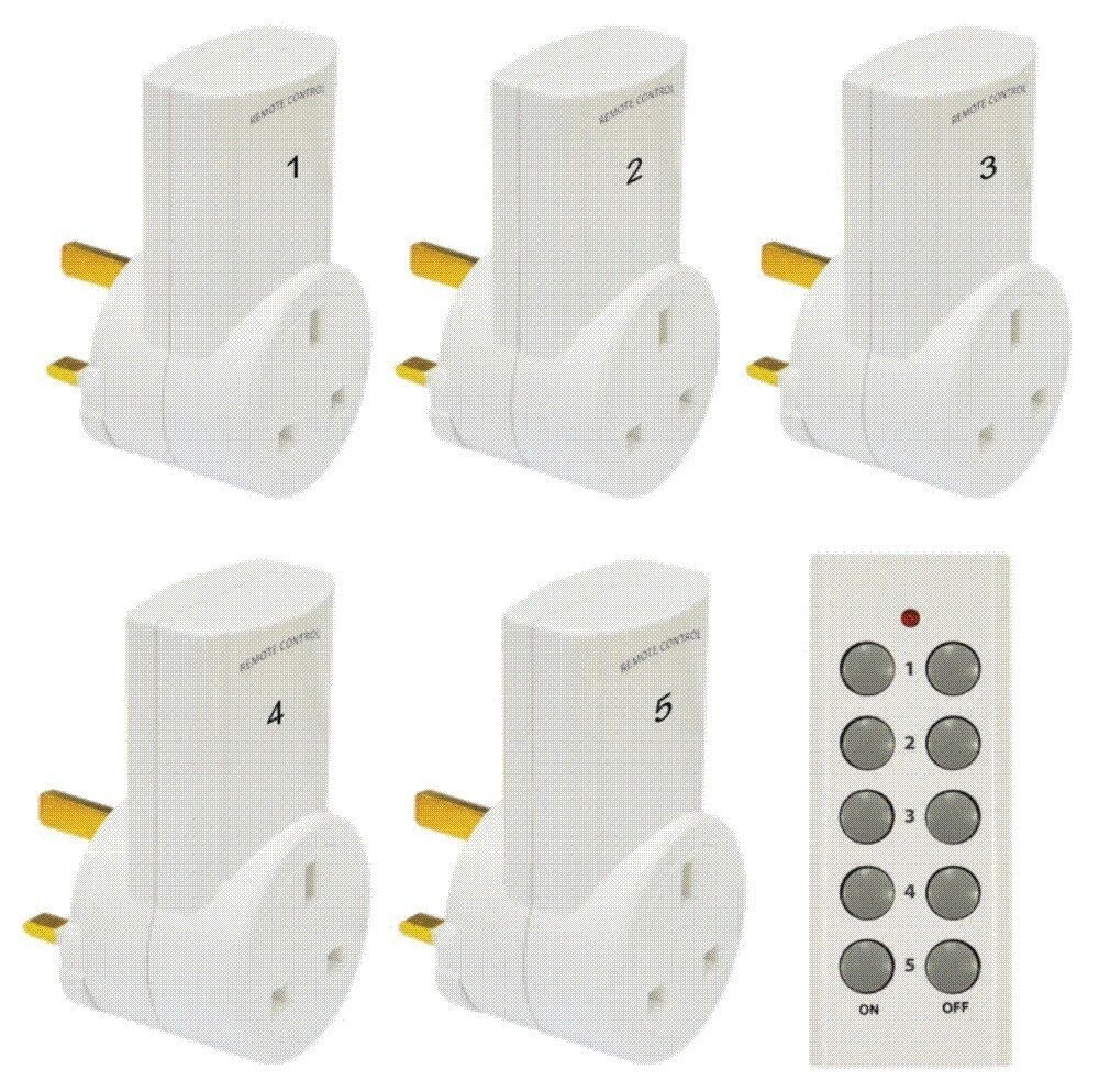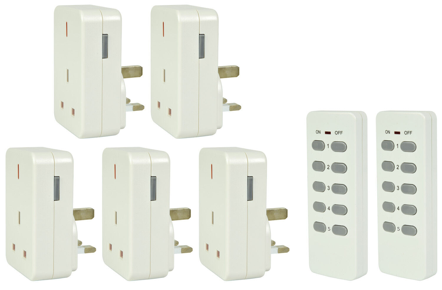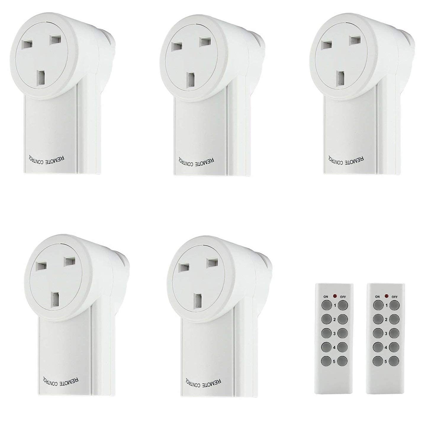 5 Wireless Remote Control Mains Electrical Sockets UK Plug In 13A Adapters White
