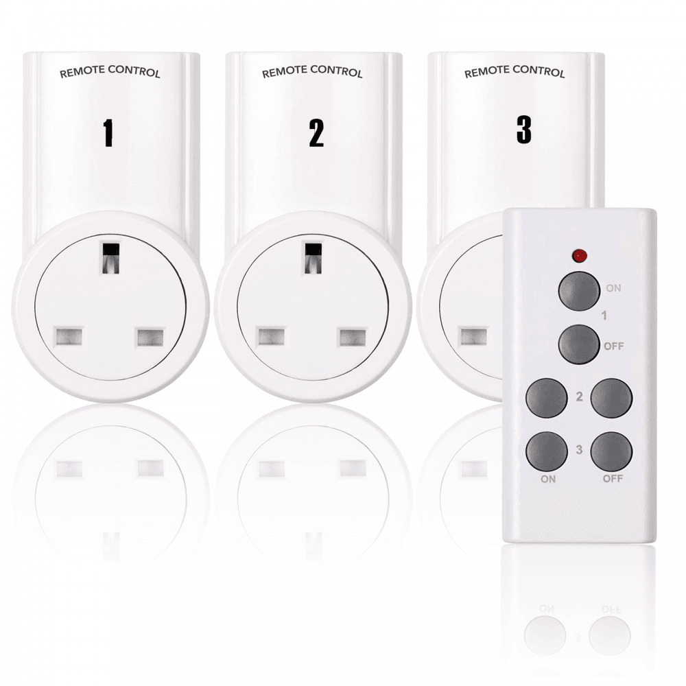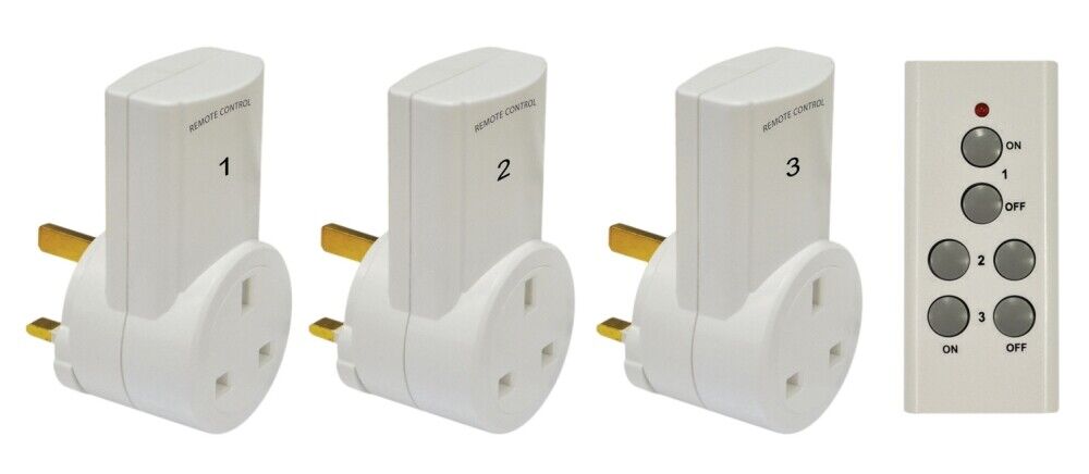 3 x Remote Control UK Mains Sockets & Standby Shut Off - 30M Range UK