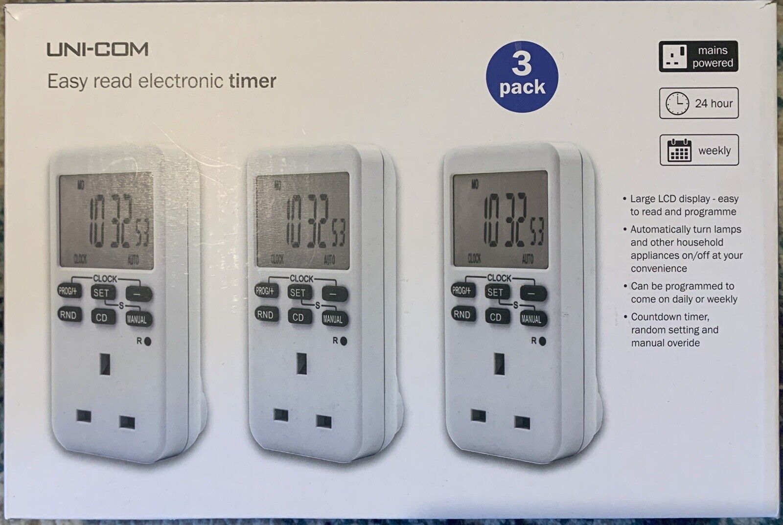 UNI-COM Remote Control Sockets with Large LCD Display 3 Pack