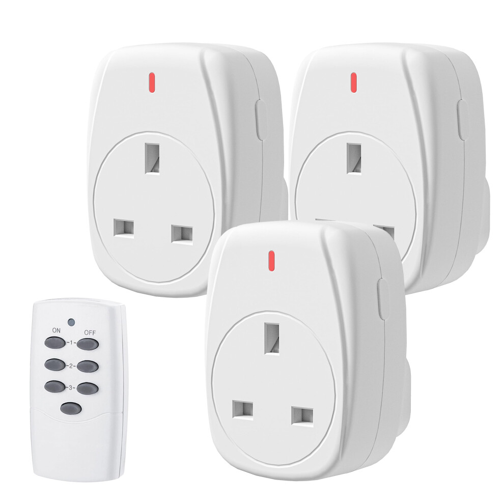 Remote Control Plug Sockets UK 3 Pack 30m Range Wireless On Off Switch Timer RF