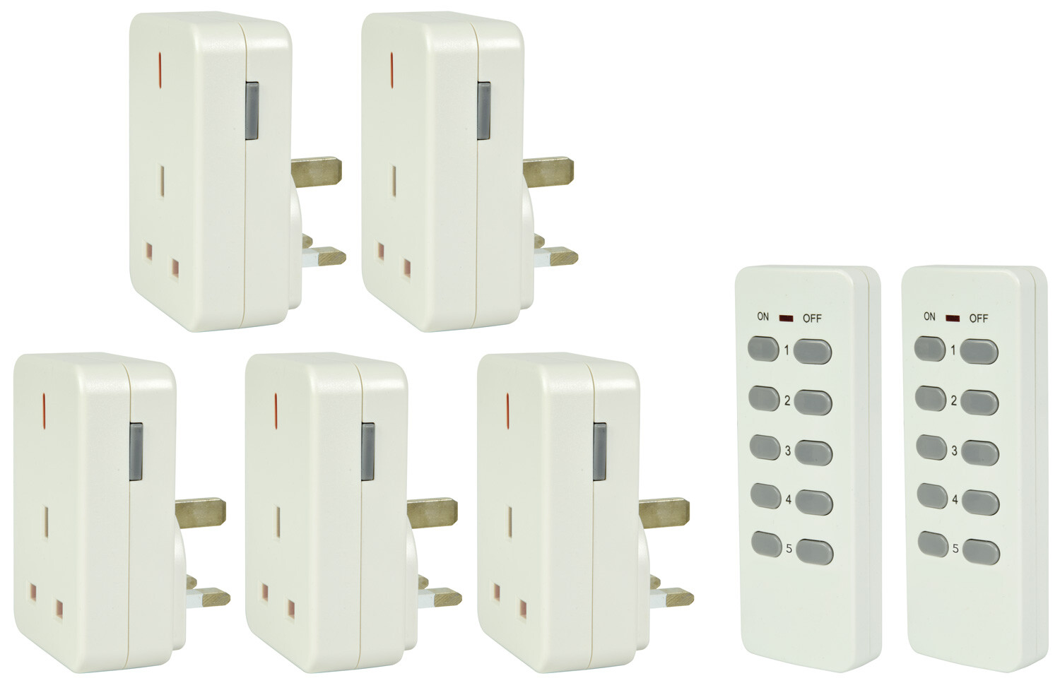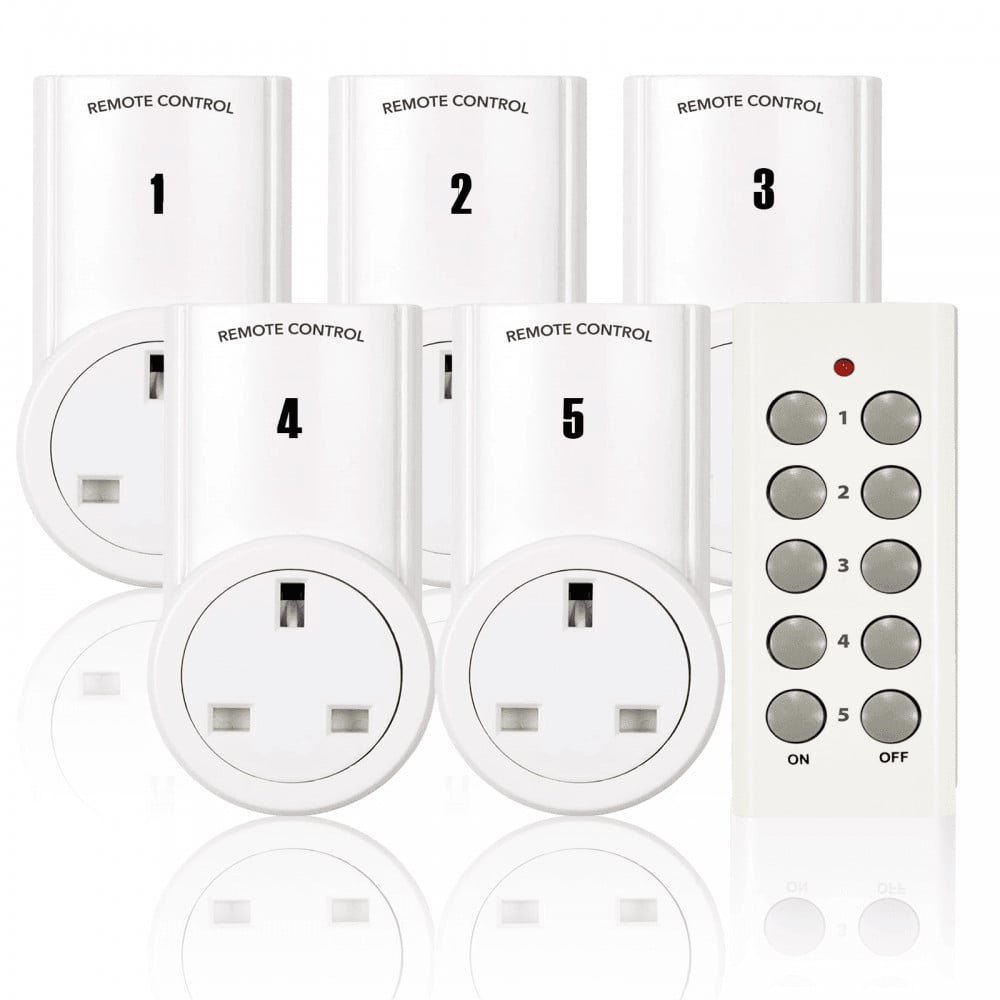 | Wireless Remote Control Mains Sockets | Set Of 5 With 2 Remotes