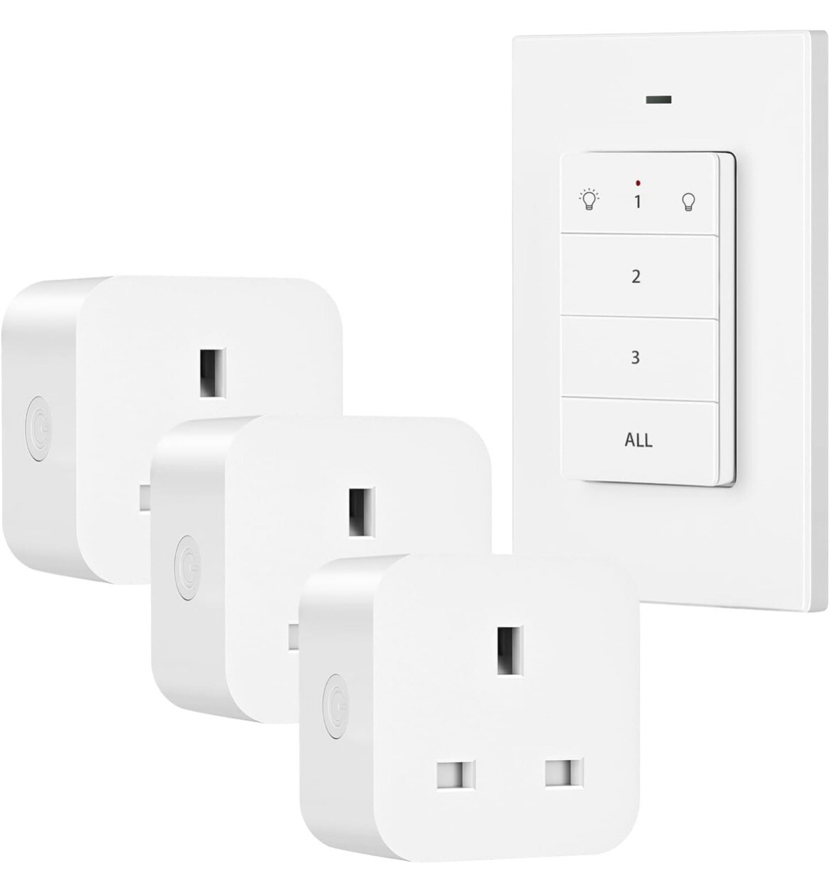 3-Pack Remote Control Plug Sockets with Wireless Light Switch & 1 Remote