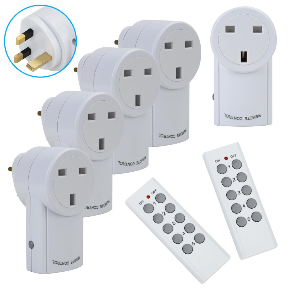 5 Remote Control Sockets Wireless Switch Mains Power Outlet Pack UK Plug