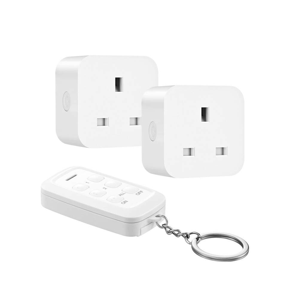 DEWENWILS Remote Control Sockets with 30m/100ft Long Range, Programmable Heavy Duty Wireless Light Switch with keyring, 13A and 3120W, 2 Sockets and