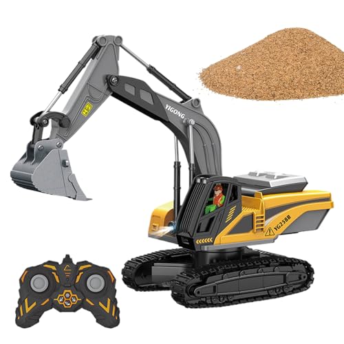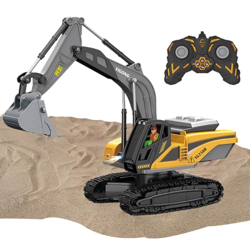Gungtj Remote Control Trucks, Electric Excavator with Light and Sound, Metal Bed Toy Remote Control Kids Dump Truck Set with Rechargeable Battery, for Age 4-12 Kids Children Girls Boys Christmas