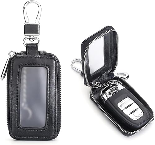 TTPSRY Premium Leather Car Key Zipper Case for Men & Women, Vintage Elegant Universal Remote Key Holder, Durable Stylish Car Key Protector(Black)