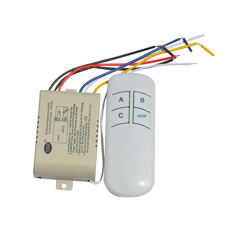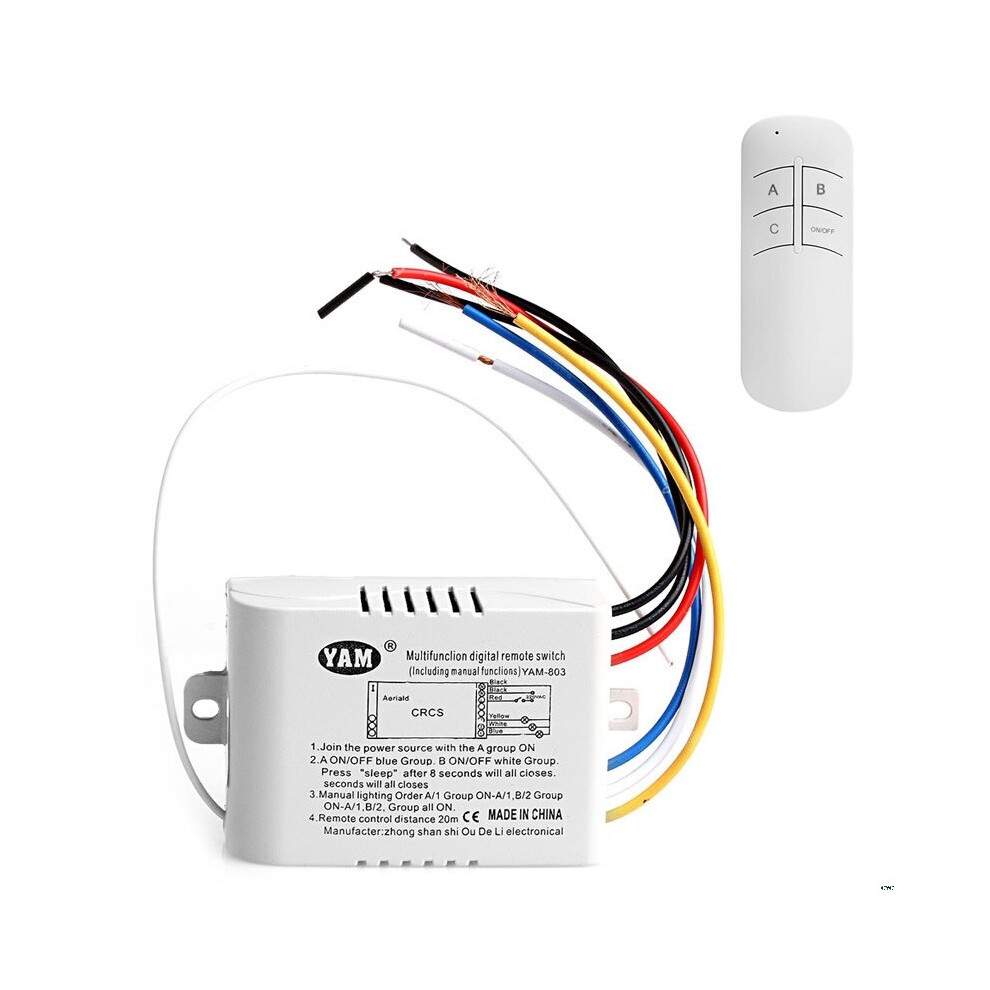 (As show, One size) Wireless ON/OFF 3 Way 220V Lamp Remote Control Switch Receiver Transmitter Controller Lamp Home Rep