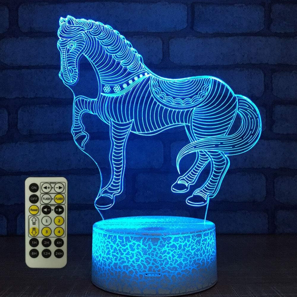 Horse Lamp 7 Colors Changing Optical Illusion Lamp Remote Touch Switch Timer Horse Night Lights for Kids Girls Boys Birthday Gifts