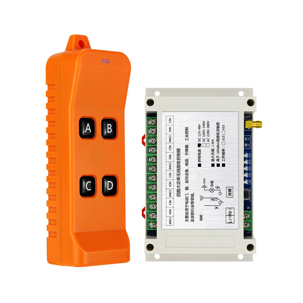 (DC12-48V) 433MHz Wireless DC48V AC220V/380V Water Pump Remote Control Switch Four-way Intelligent Remote Control Switch Lamp Controller
