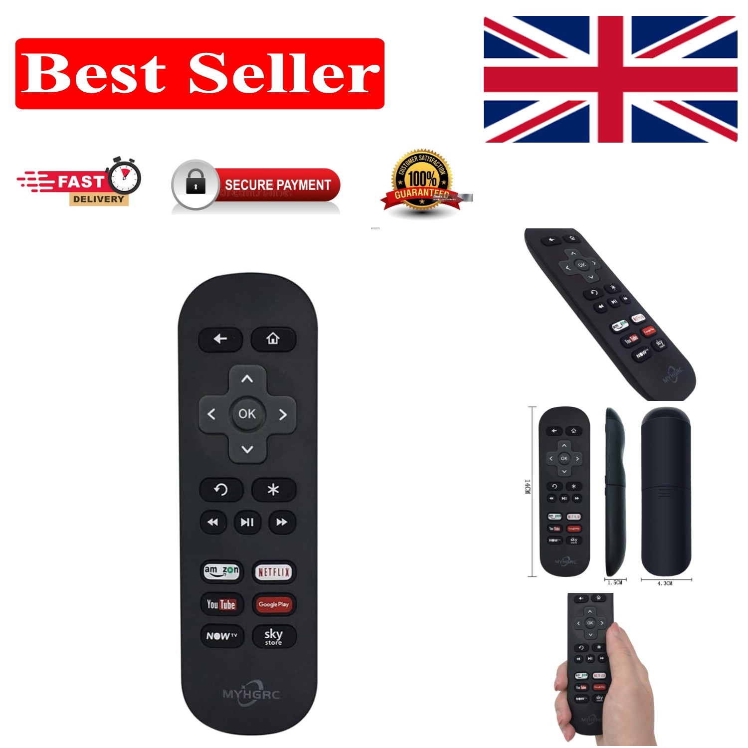NOW TV Remote Control Replacement for 1-4 Models & Roku - Simple Battery Setup