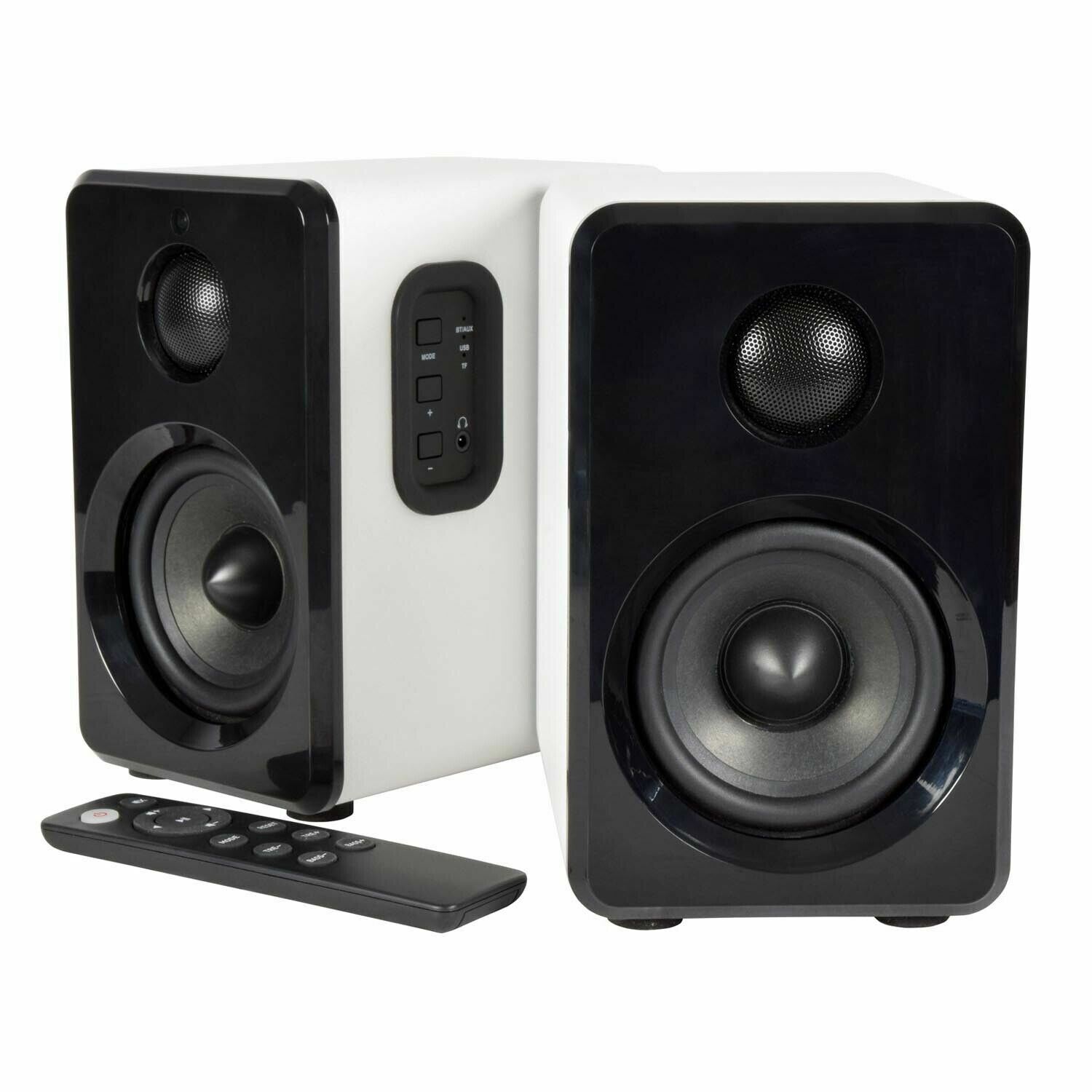 Active Wireless Bluetooth Bookshelf Speakers Pair AUX/USB/SD + Remote White