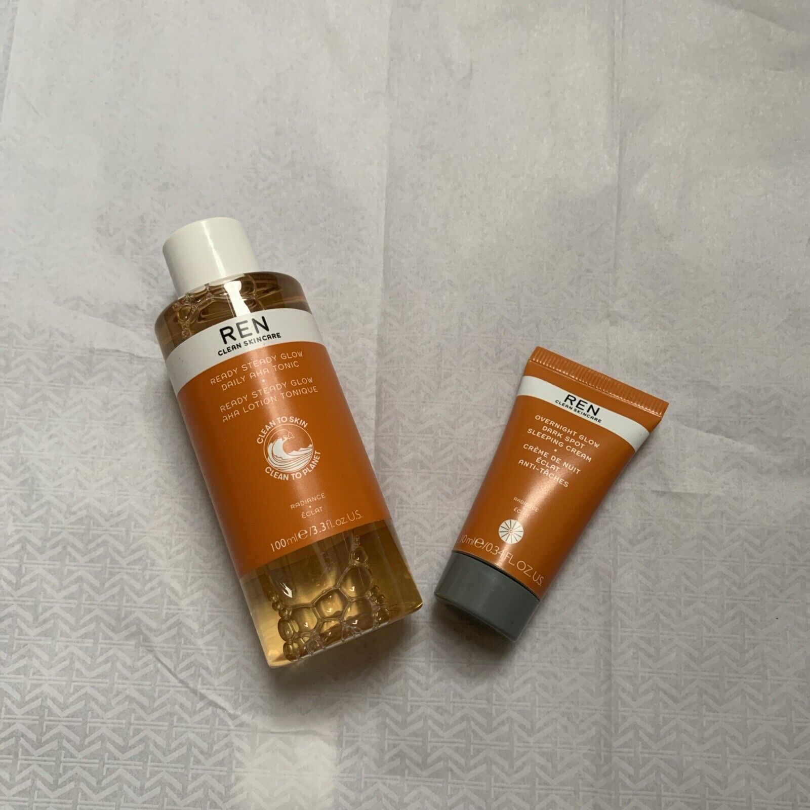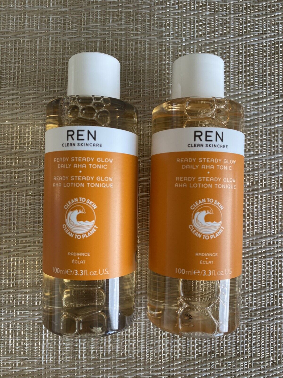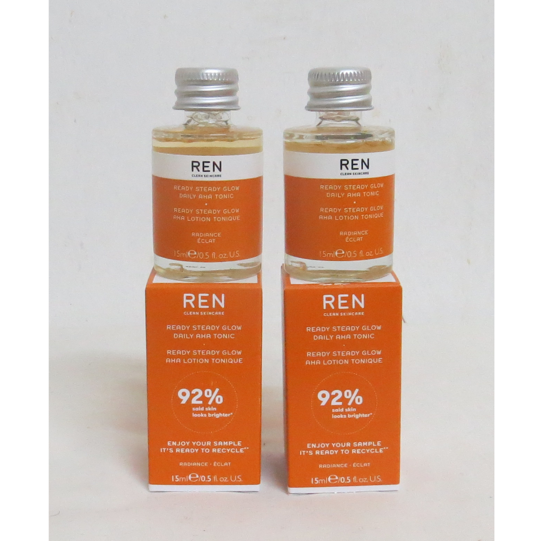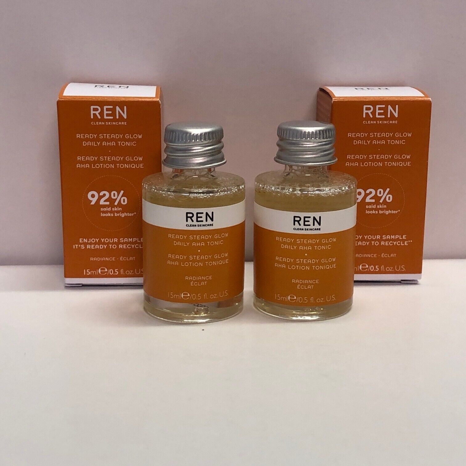2 X REN Ready Steady Glow AHA Tonic's 15ml Travel Size New & Boxed