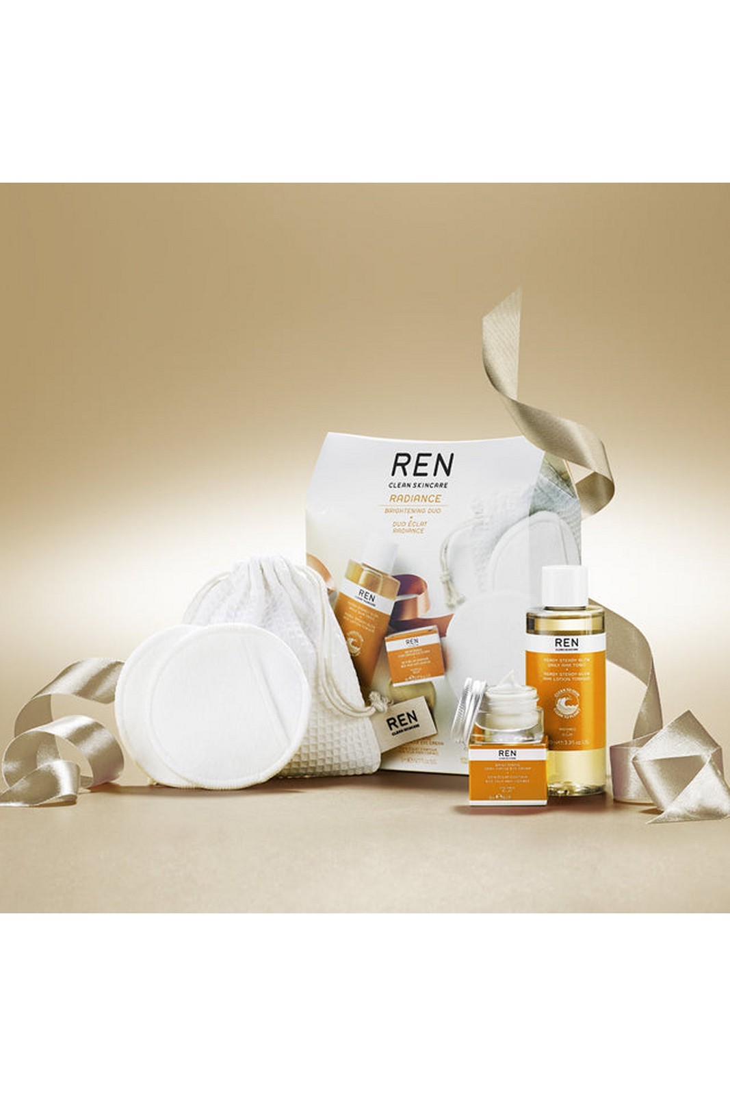 Ren Clean Skincare Radiance Brightening Duo Set - Eye Cream, AHA Tonic + Bag