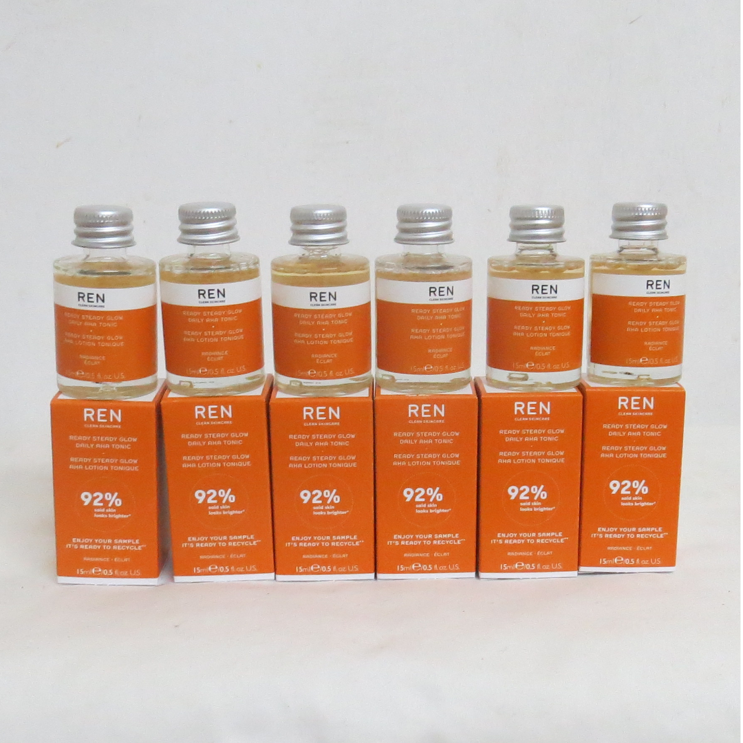 Joblot x Ren Clean Ready Steady Glow Daily AHA Tonic Lotion Toner 15ml x 6 (90ml