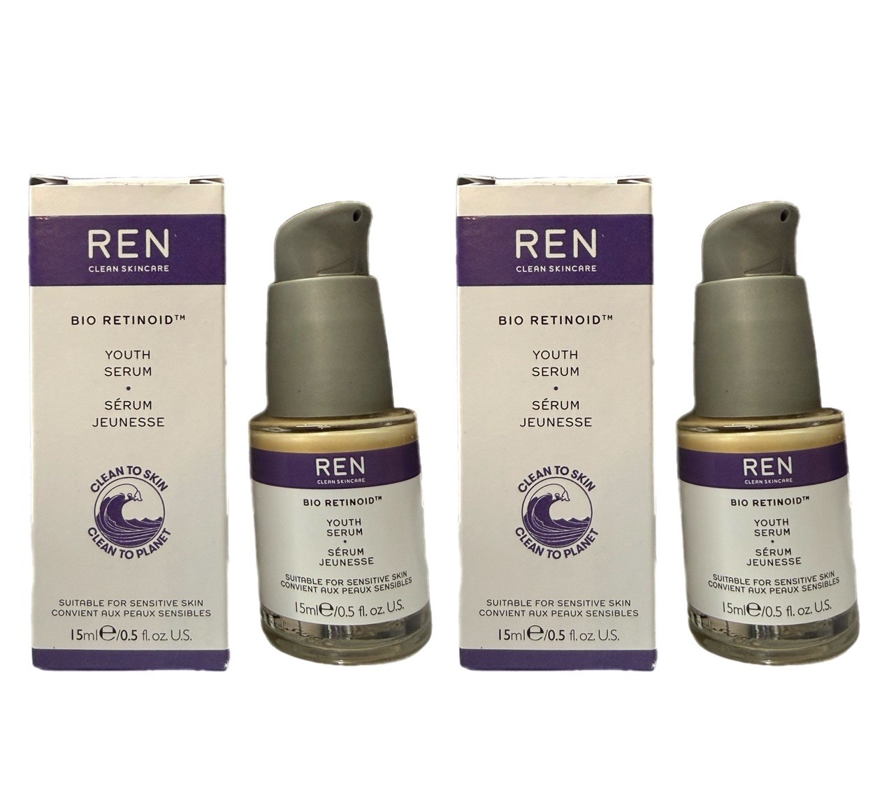 (2-pack) REN Clean Skincare Bio Retinoid Youth Serum 15ml 0.5 oz New In Box