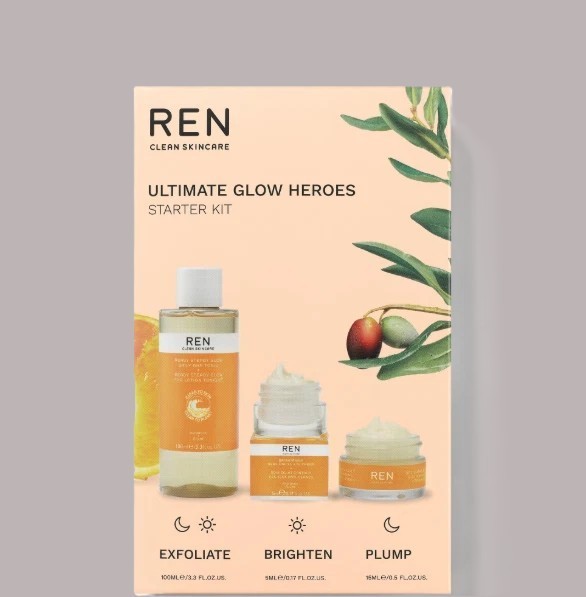 REN Radiance Ultimate Glow Heroes Starter Kit Exfoliate-Brighten-Plump
