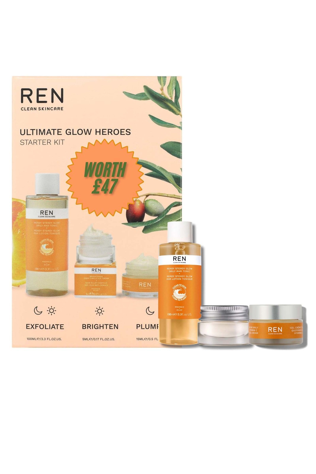 REN Clean skin care tone brighten protect Glow One Step Further Worth £47 NEW