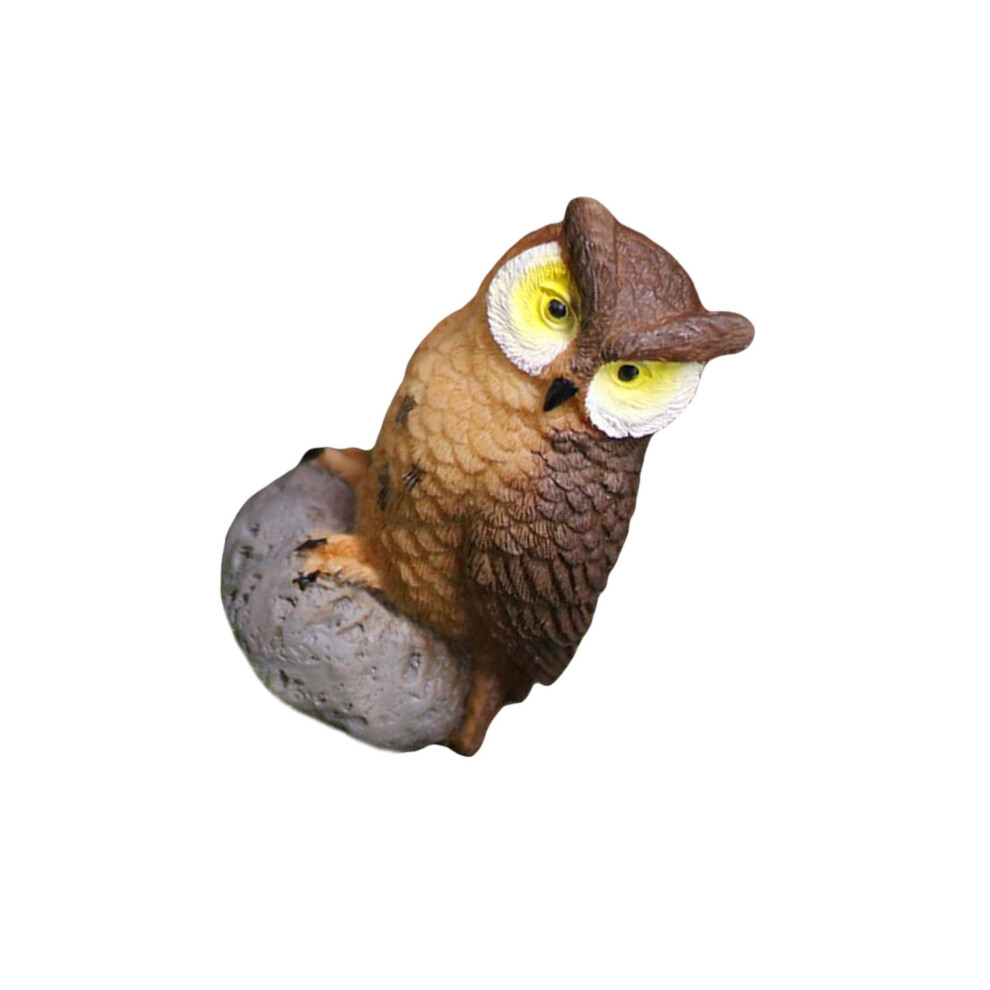 (Brown, 33x27x55cm) Mini Owl Ren Miniature Birds for Bonsai Crafts Home Decor Micro