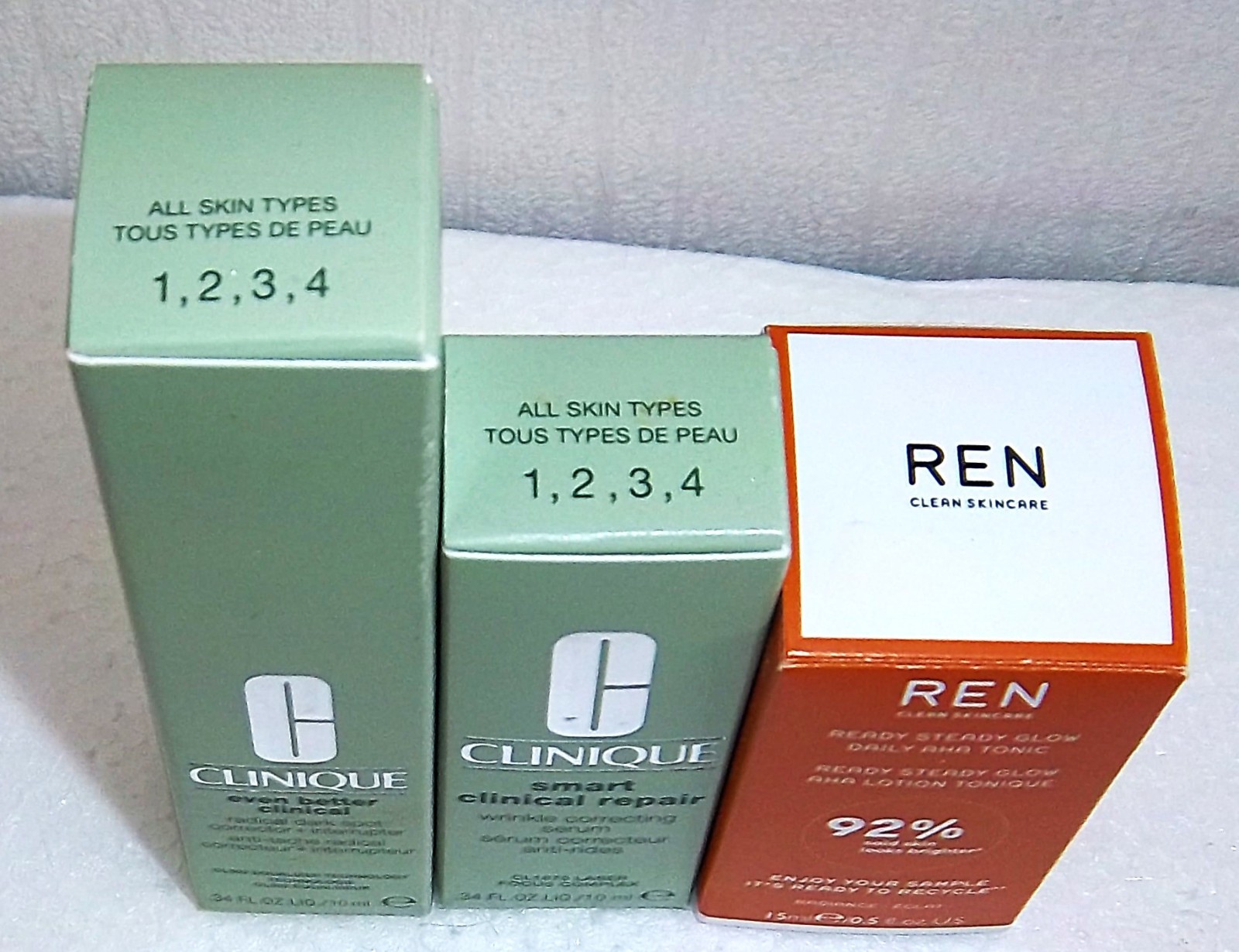 CLINIQUE WRINKLE SERUM + DARK SPOT CORRECTOR + REM READY STEADY GLOW TONIC - NEW