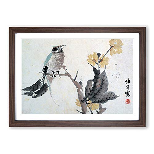 Big Box Art Bird Upon a Branch by Ren Yi Framed Wall Art Picture Print Ready to Hang, Walnut A2 (62 x 45 cm)