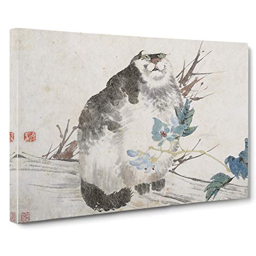 Fat Cat By Ren Yi Canvas Print | Gallery Wrapped 30mm Frame Wall Art | 20x14 inches | Ready to Hang | Asian Animals Picture | Living Room Bedroom Lounge Office