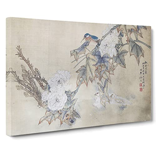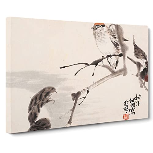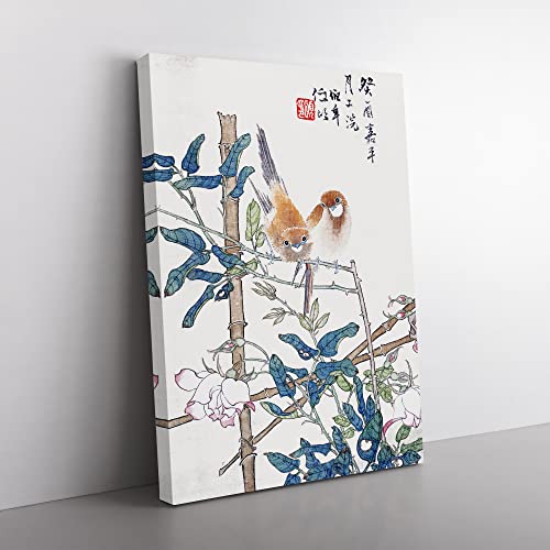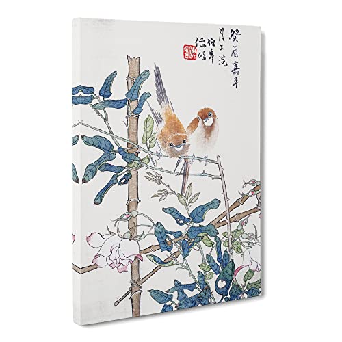 Birds By Ren Yi Asian Japanese Canvas Wall Art Print Ready to Hang, Framed Picture for Living Room Bedroom Home Office Décor, 20x14 Inch (50x35 cm)