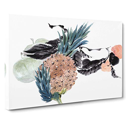 Big Box Art Pineapple Fruit by Ren Yi Painting Canvas Wall Art Print Ready to Hang Picture, 76 x 50 cm (30 x 20 Inch), White, Cream, Grey, Black