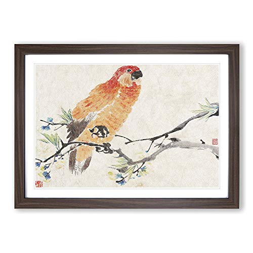 Big Box Art Parrot by Ren Yi Framed Wall Art Picture Print Ready to Hang, Walnut A2 (62 x 45 cm)