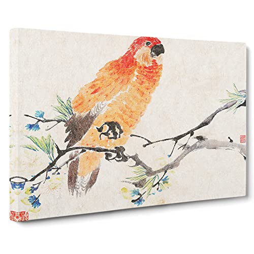 Parrot By Ren Yi Asian Japanese Canvas Wall Art Print Ready to Hang, Framed Picture for Living Room Bedroom Home Office Décor, 20x14 Inch (50x35 cm)