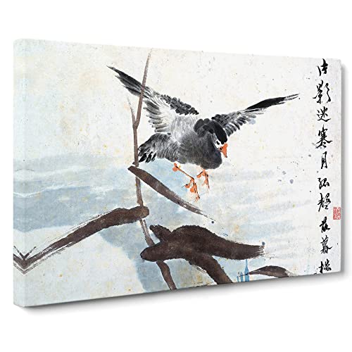 Flying Goose By Ren Yi Asian Japanese Canvas Wall Art Print Ready to Hang, Framed Picture for Living Room Bedroom Home Office Décor, 30x20 Inch (76x50 cm)