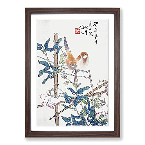 Big Box Art Two Birds by Ren Yi Framed Wall Art Picture Print Ready to Hang, Walnut A2 (62 x 45 cm)