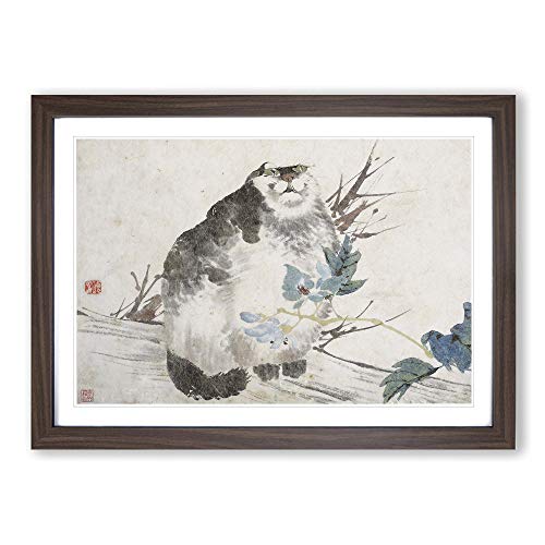 Big Box Art Fat Cat by Ren Yi Framed Wall Art Picture Print Ready to Hang, Walnut A2 (62 x 45 cm)