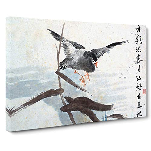 Flying Goose By Ren Yi Canvas Print | Gallery Wrapped 30mm Frame Wall Art | 20x14 inches | Ready to Hang | Asian Bird Picture | Living Room Bedroom Lounge Office