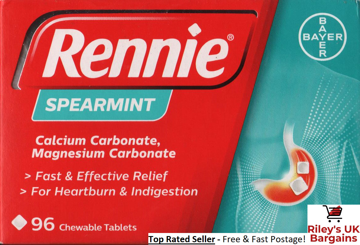 Rennie Spearmint Antacid 96 Chewable Tablets Heartburn Indigestion Relief Acid
