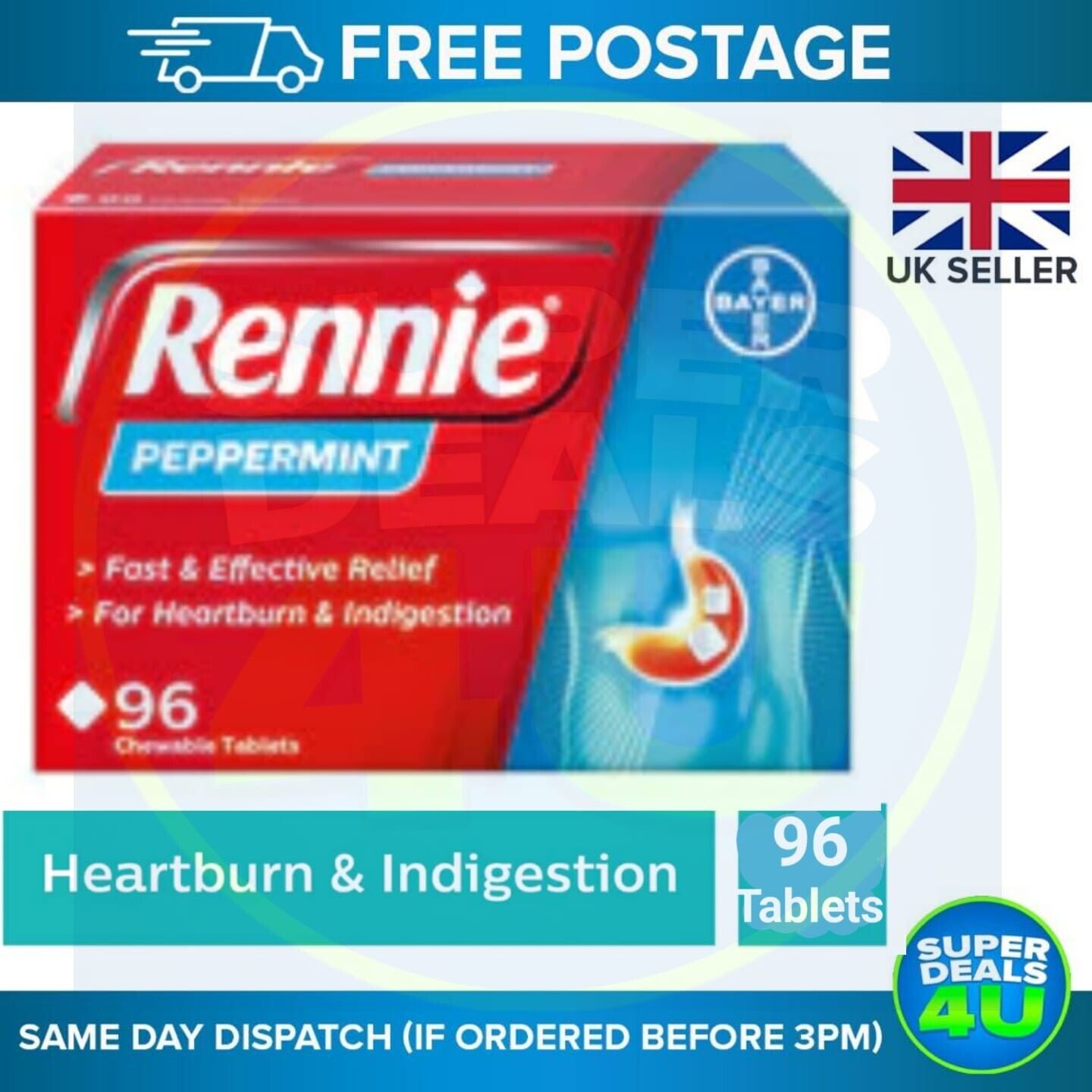 Rennie Sugar Free Spearmint- 48 tablets FREE P&P