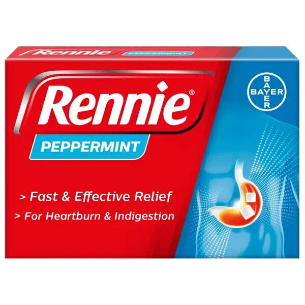 Rennie Peppermint Antacid 72 Chewable Tablets Heartburn Indigestion Relief Acid