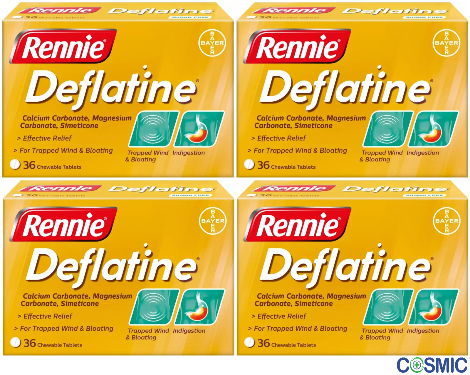 4 X Rennie Deflatine Trapped Wind 36 Tablets Bloating Relief | Sugar Free Mint