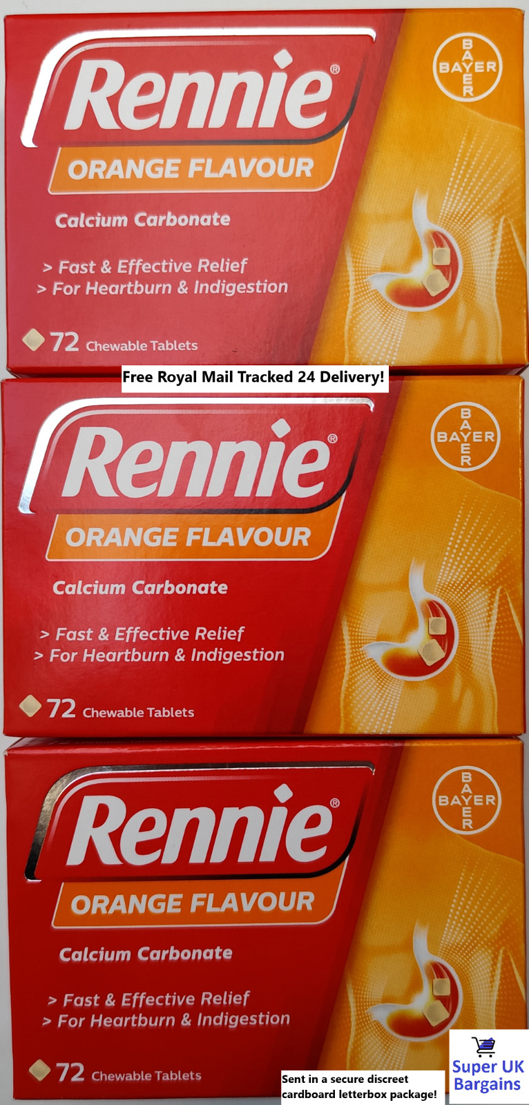 3 X Rennie Orange Flavour 24 Chewable Tablets For Heartburn & Indigestion