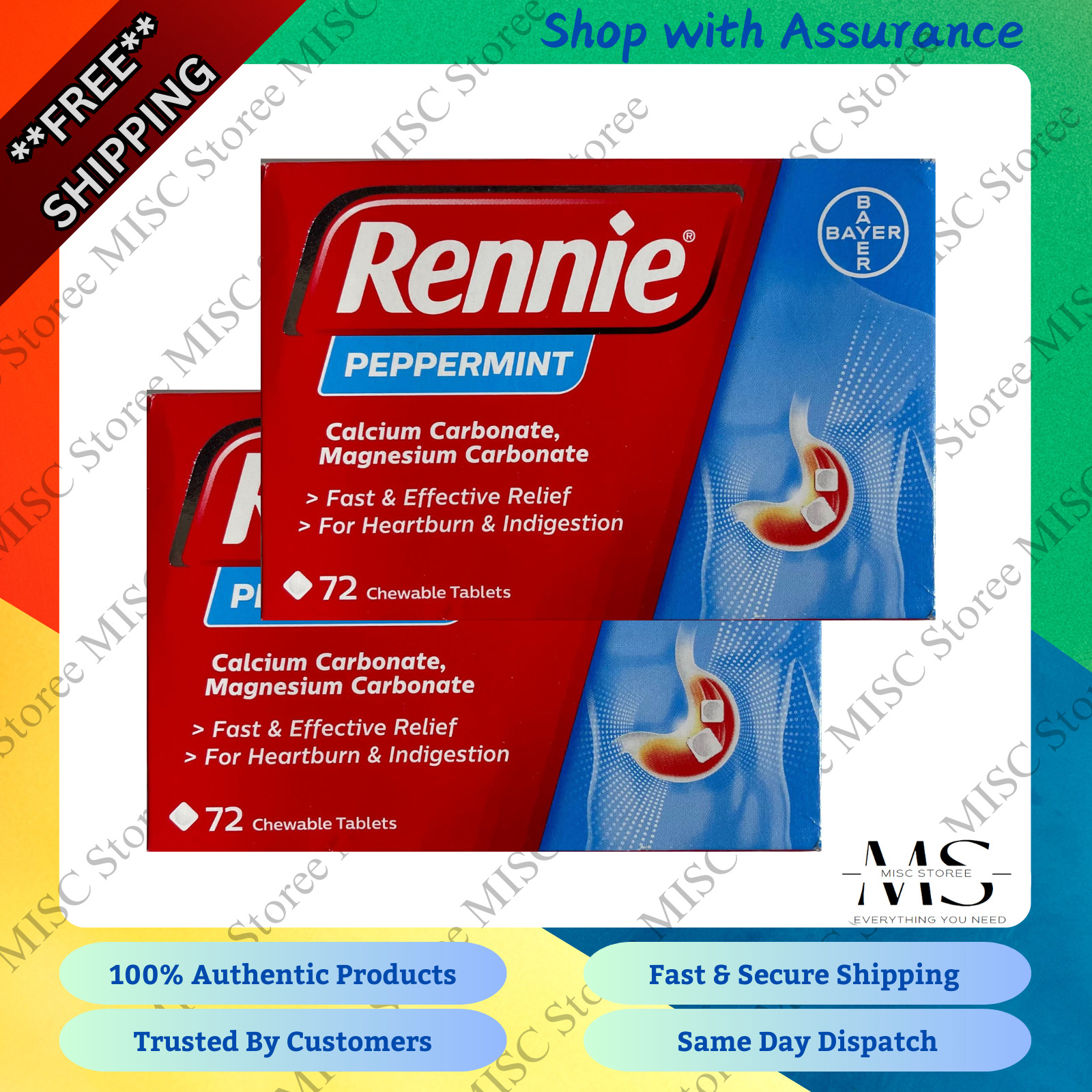 2 X MM Rennie Spearmint 36-Tablets for Effective Digestive Relief