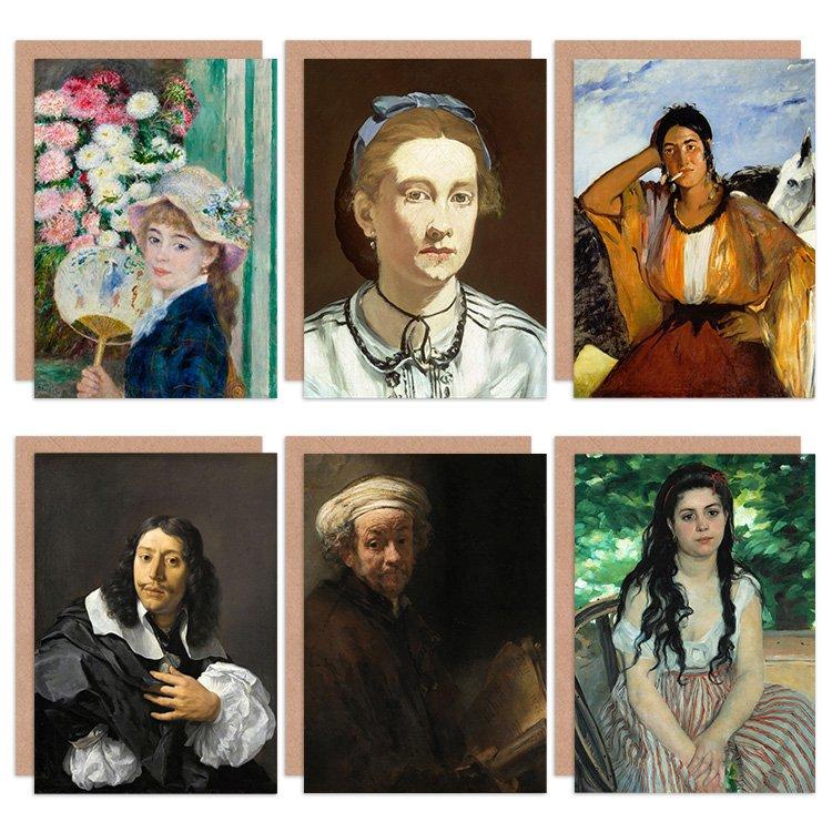 Renoir Monet Degas Peale Da Vinci Mona Lisa Portrait Mixed Fine Art Greeting Card Pack of 6