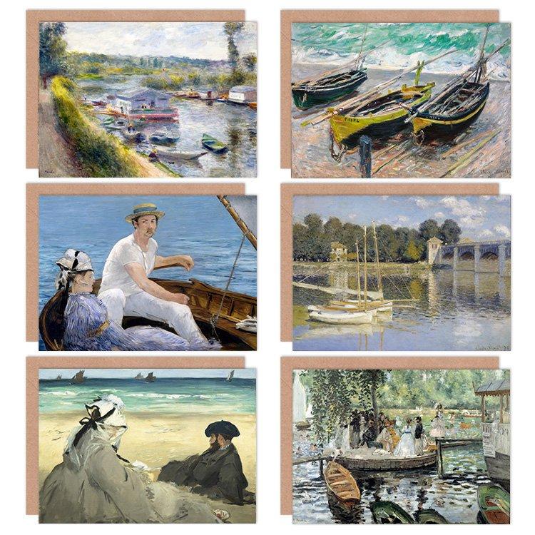 Renoir Monet Manet Fishing Boats Water Beach Mixed Fine Art Greeting Card Pack of 6